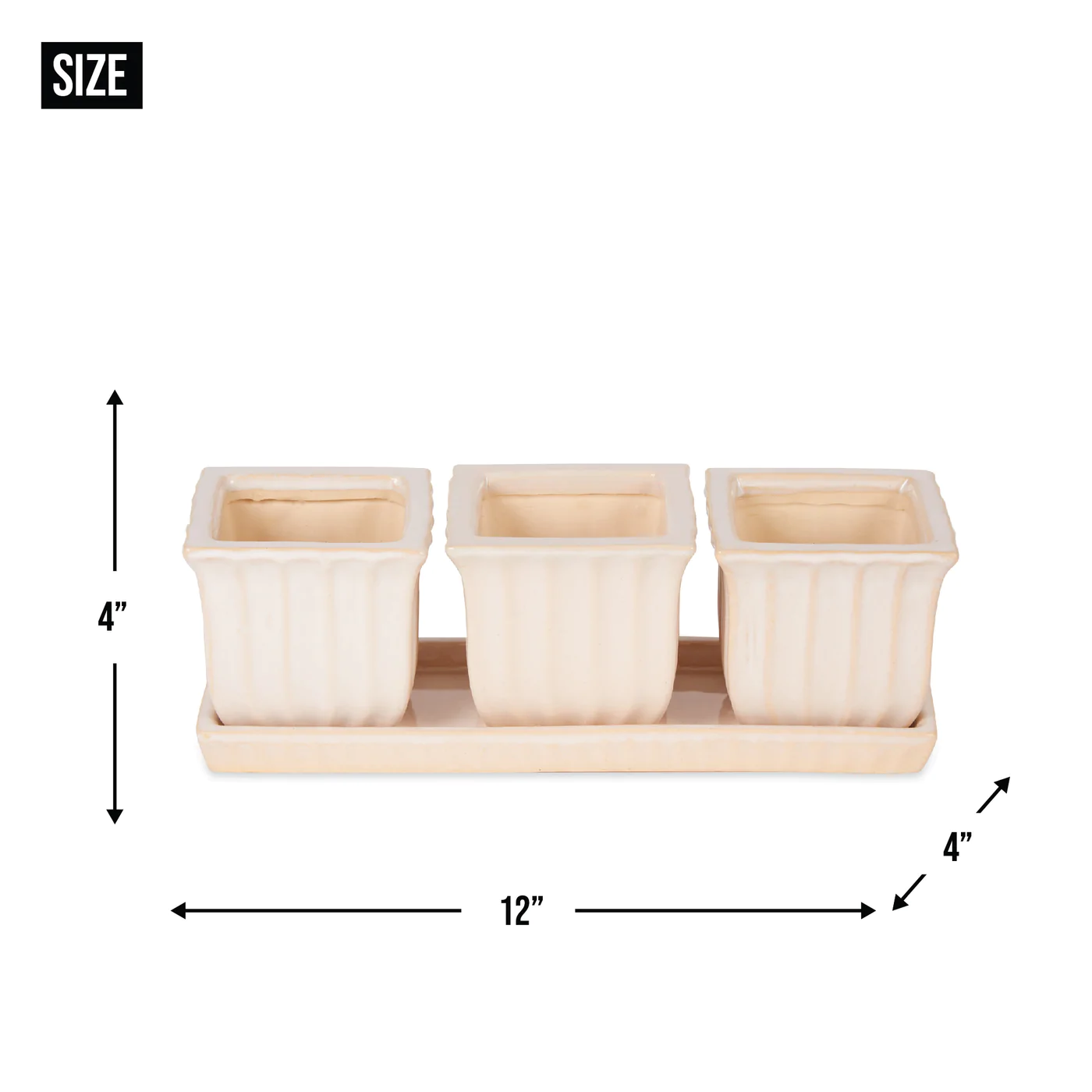 • Ceramic herb planter set measures 12x4x4 inches includes 3 square pots and 1 saucer.