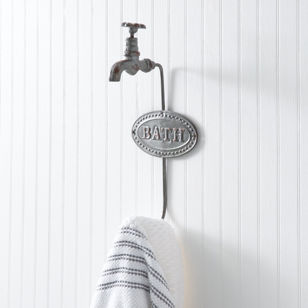 Hang up the stress from a long day and relax in the bath. This large bath hook is ideal for hanging towels or a robe. Item is fashioned of cast iron. To hang, use two screws.
